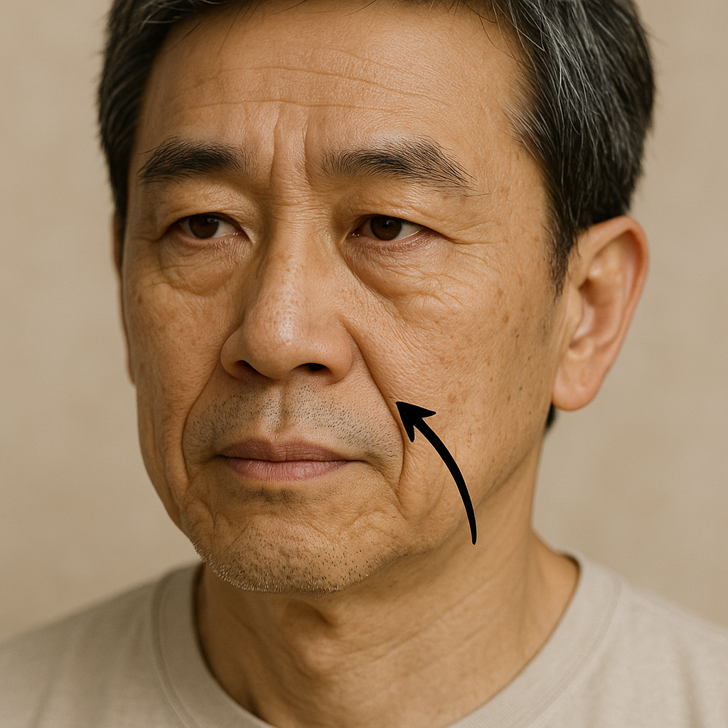 팔자주름은 코 옆에서 입꼬리로 이어지는 주름으로, 의학적으로는 ‘비순구 주름’이라 불립니다. 주요 원인은 다음과 같습니다.